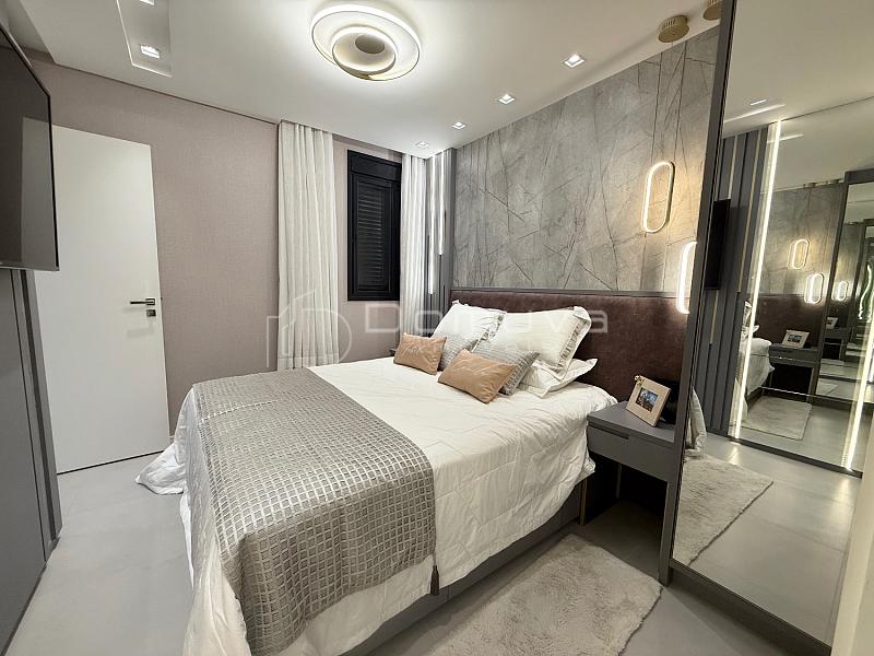 Este apartamento à venda no Ariribá possui 2 vagas de garagem privativas e está em um prédio com infraestrutura completa, incluindo 2 elevadores, 2 salões de festas, brinquedoteca e piscina.