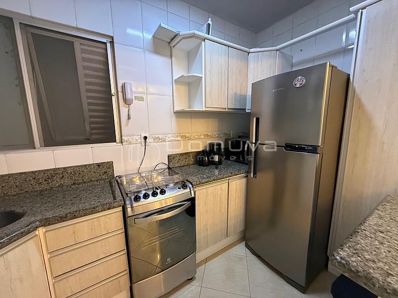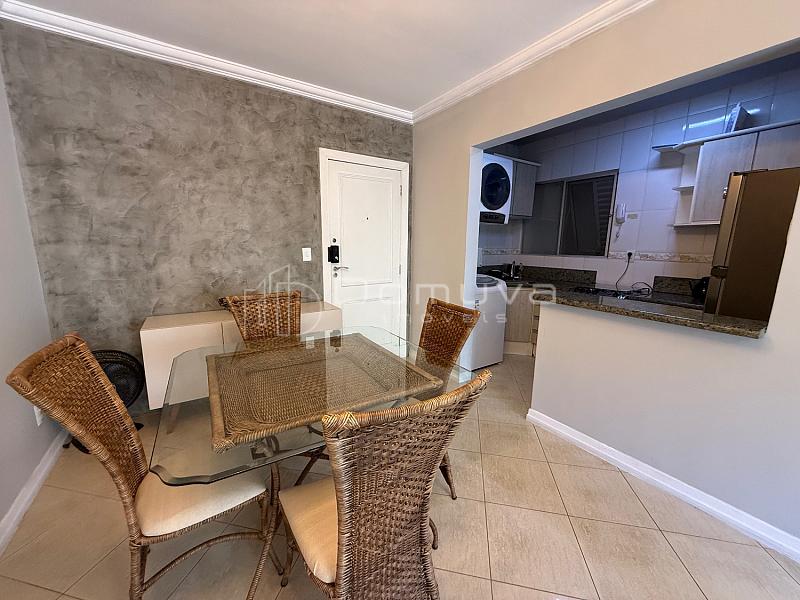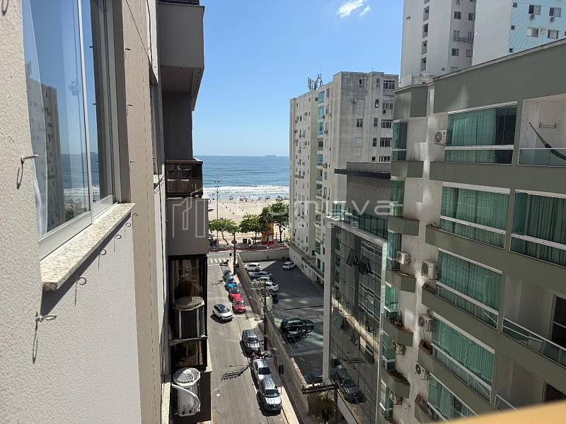 Apartamento quadra do mar, excelente localização, com 1 quarto, banheiro social, cozinha, sala de jantar e estar, sacada com vista para o mar, Wi-Fi e 1 vaga de garagem.