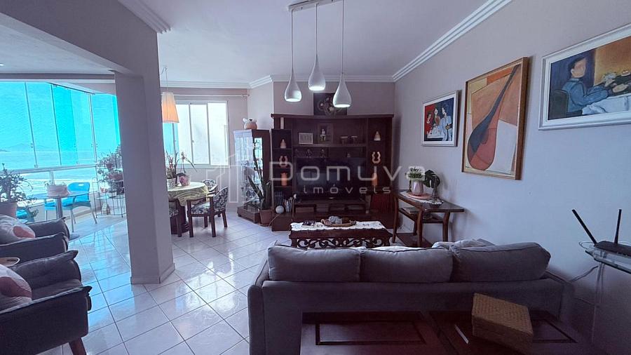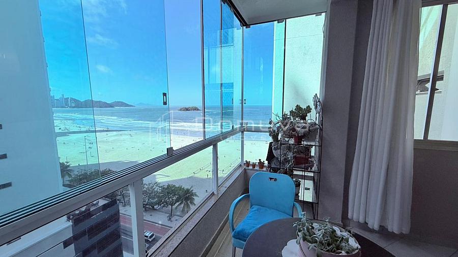 Apartamento frente mar, centro, com 2 quartos, sendo 1 suíte, banheiro social, cozinha, sala de jantar e estar, sacada com vista e área de serviço.