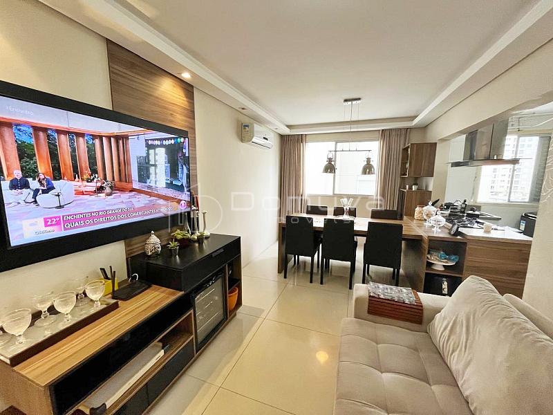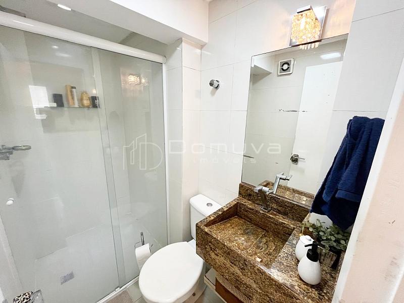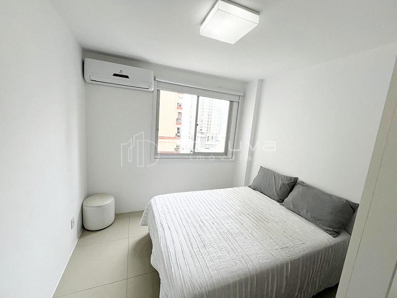 Apartamento na quadra do mar, com 2 quartos, sendo 1 suíte, banheiro social, cozinha, sala de jantar e estar, área de serviço. Ar-condicionado na sala e nos dormitórios.