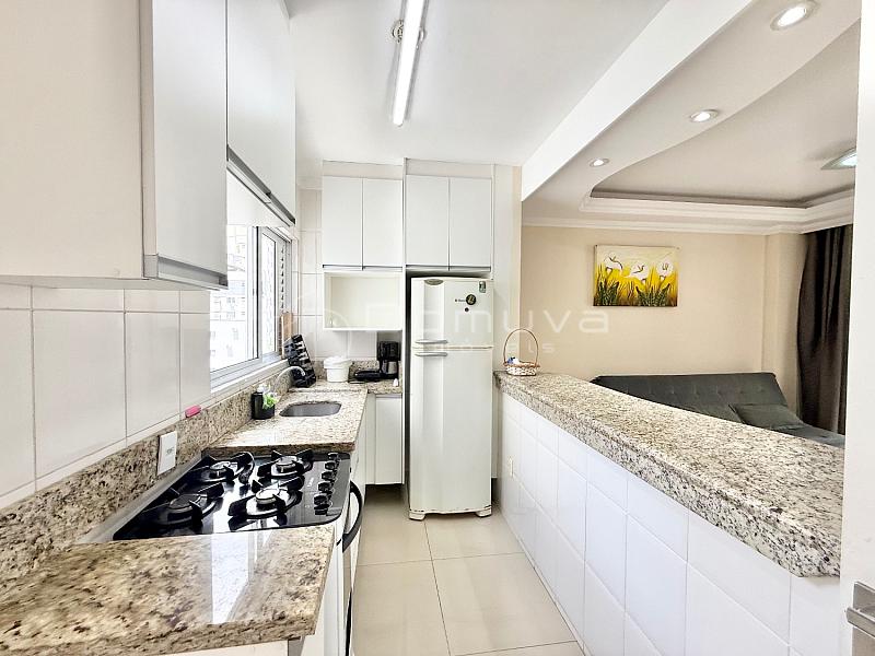 Apartamento na segunda quadra, com 3 quartos, sendo 1 suíte, banheiro social, cozinha americana, sala de jantar e estar, área de serviço, sacada com churrasqueira a carvão, Wi-Fi e 1 vaga de garagem.