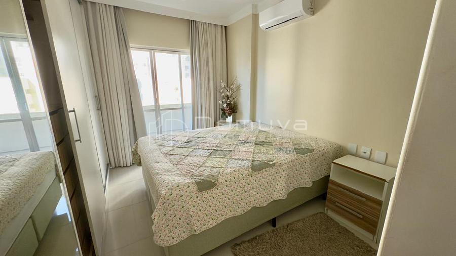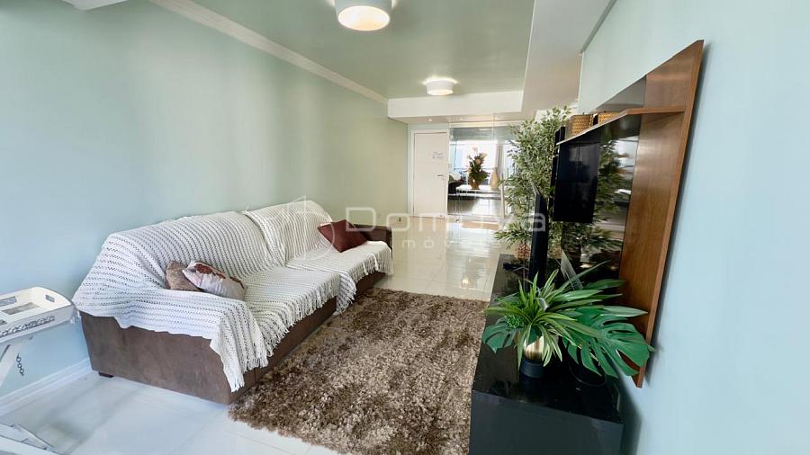 Apartamento quadra mar, com 3 quartos, sendo 1 suíte, banheiro social, cozinha integrada, sala de jantar e estar, área de serviço e sacada com vista para o mar.