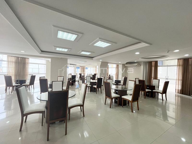 O condomínio conta com área de lazer com 02 salão de festas, sala de jogos, quiosque com churrasqueira, piscina, sauna seca e úmida, academia e playground.