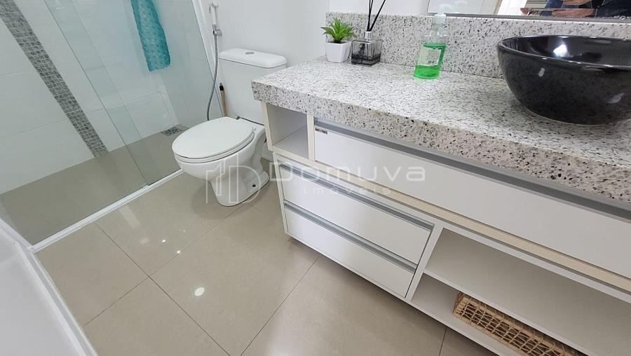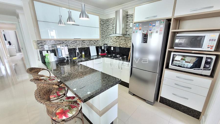 Apartamento na segunda quadra do mar, rua reta ao mar, com 3 quartos, todos suítes, lavabo, cozinha, sala de jantar e estar, área de serviço e sacada com churrasqueira a carvão.