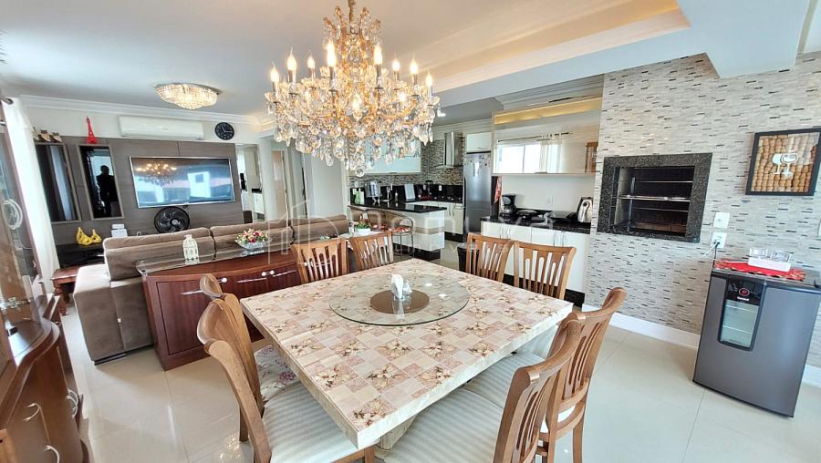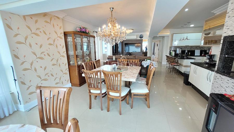 • [Apartamento na segunda quadra do mar, rua reta ao mar, com 3 quartos, todos suítes, lavabo, cozinha, sala de jantar e estar, área de serviço e sacada com churrasqueira a carvão. Ar-condicionado na sala e nas 3 suítes.