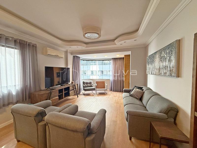 • [Apartamento na segunda quadra, com 3 quartos, sendo 1 suíte, banheiro social, cozinha, sala de jantar e estar, área de serviço e sacada com churrasqueira.