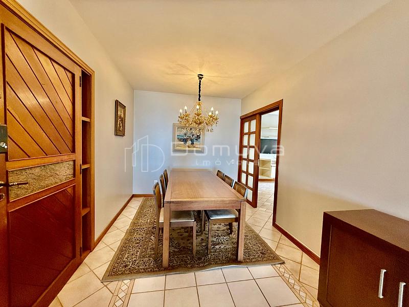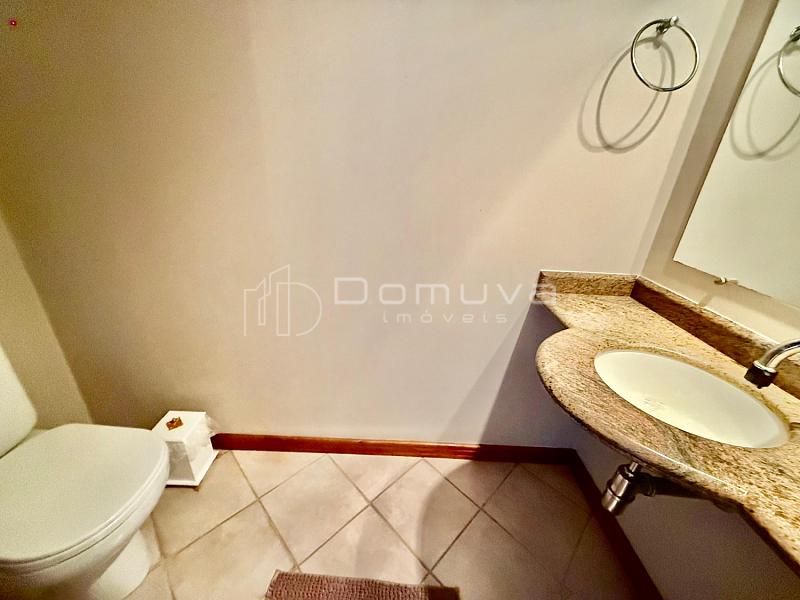 • O imóvel conta com 3 suítes, dependência de empregada com banheiro, lavabo, sala de TV, living integrado, cozinha completa, sacada com churrasqueira a carvão, área de serviço com máquina de lavar e 2 vagas de garagem.