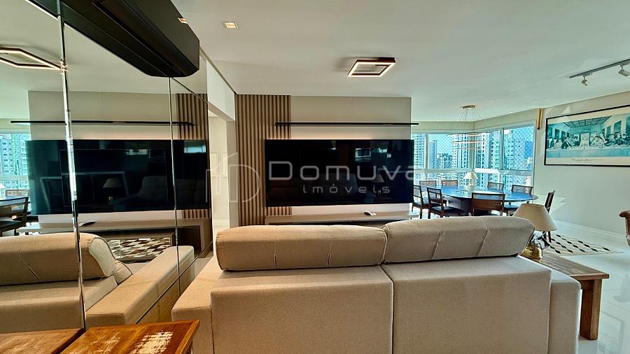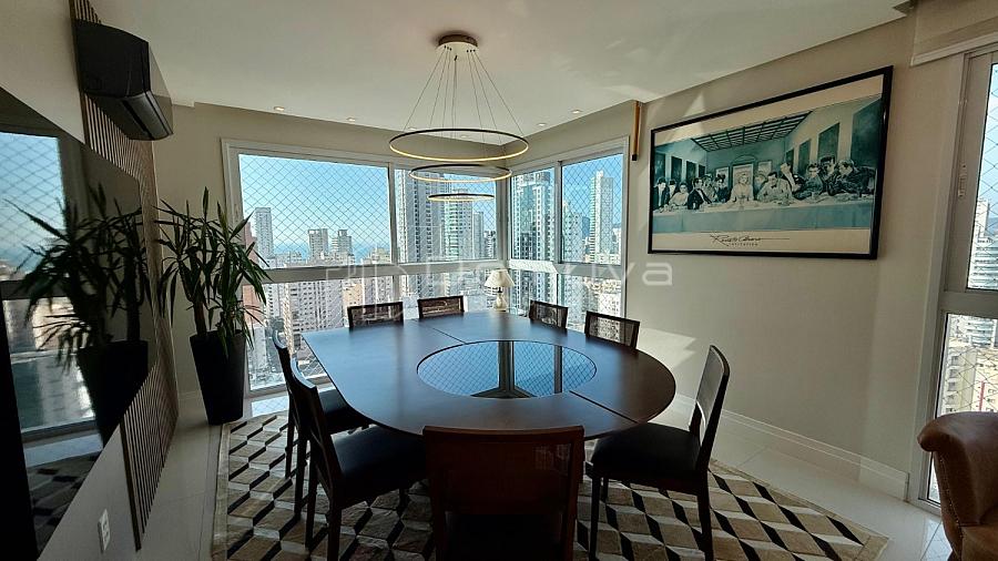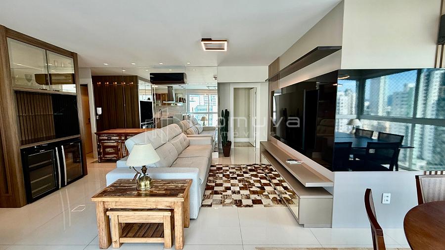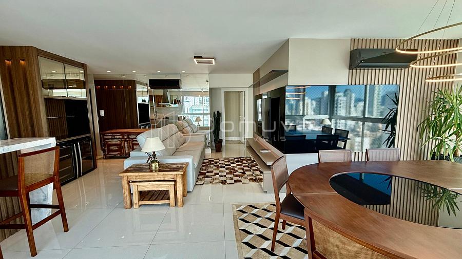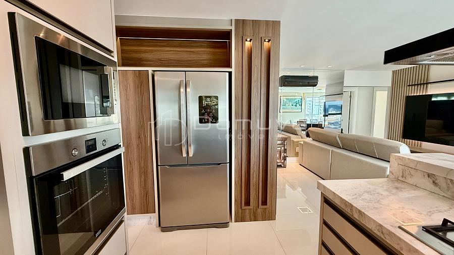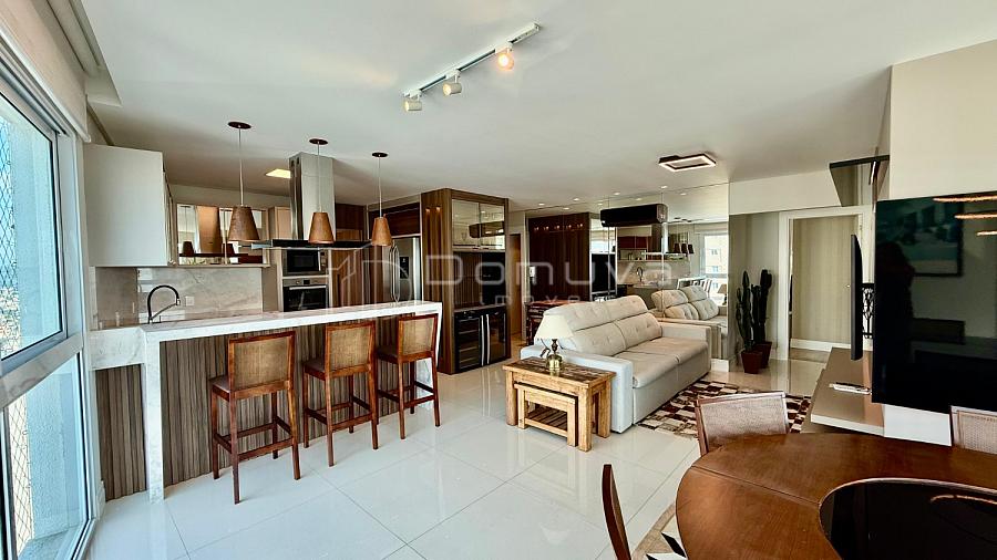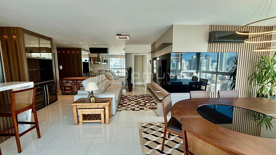 Finamente mobiliado e climatizado, este apartamento oferece 127m² de área privativa, com 3 suítes, living espaçoso com ambientes integrados, cozinha estilo gourmet, lavabo, área de serviço e 2 vagas de garagem privativas.