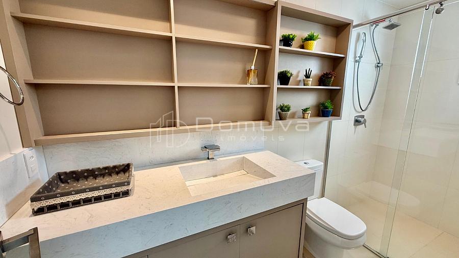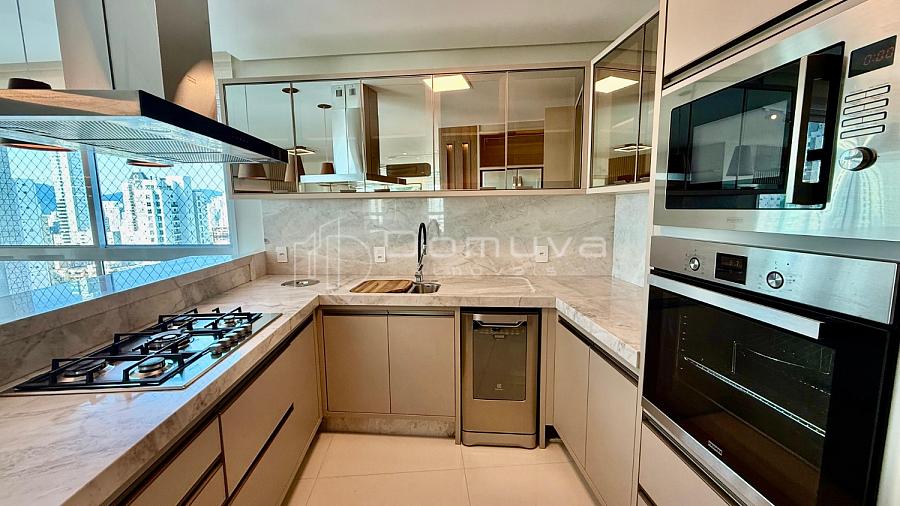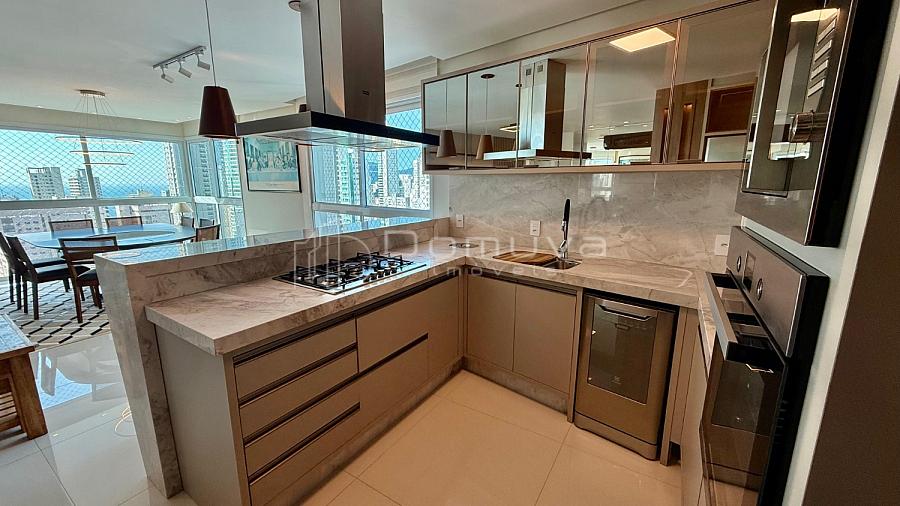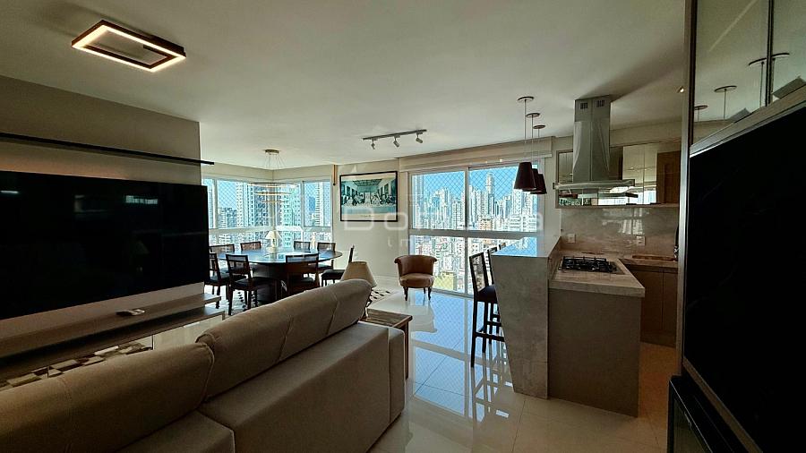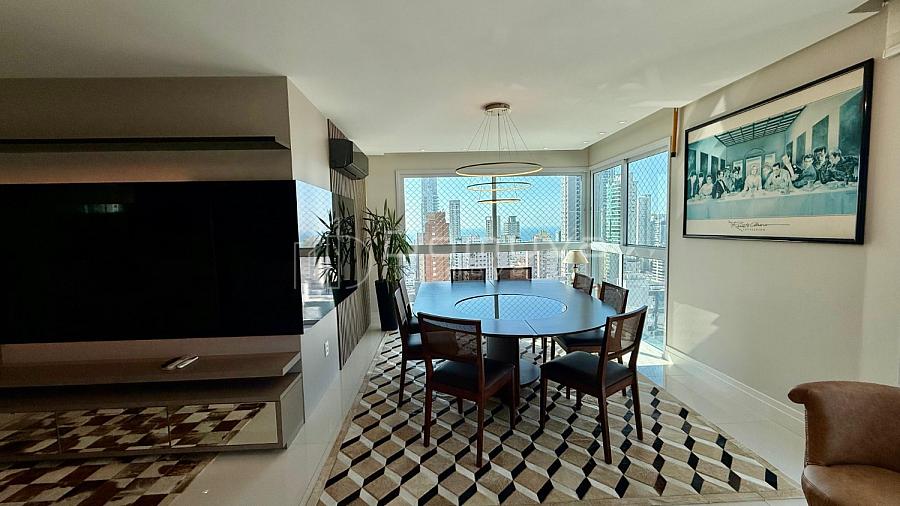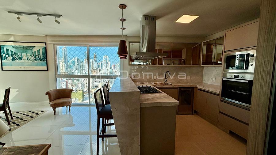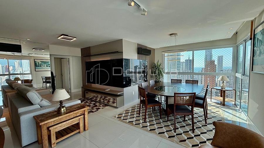 Finamente mobiliado e climatizado, este apartamento oferece 127m² de área privativa, com 3 suítes, living espaçoso com ambientes integrados, cozinha estilo gourmet, lavabo, área de serviço e 2 vagas de garagem privativas.