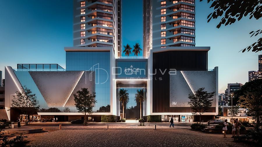 Com duas torres de 55 pavimentos e apenas dois apartamentos por andar, o Ápice Towers entrega privacidade, amplitude e elegância em cada detalhe. São 176 unidades residenciais e 19 salas comerciais, distribuídas em um projeto arquitetônico imponente, com passarela panorâmica entre as torres e três pavimentos inteiros dedicados ao lazer.