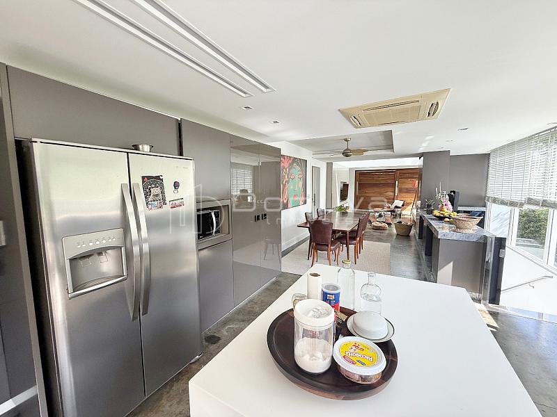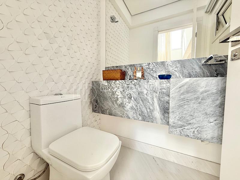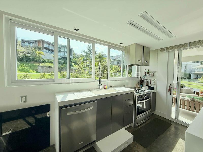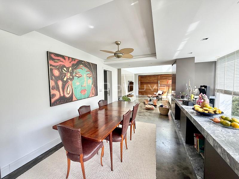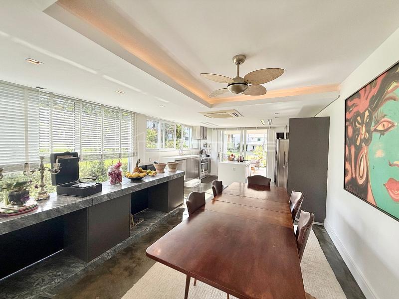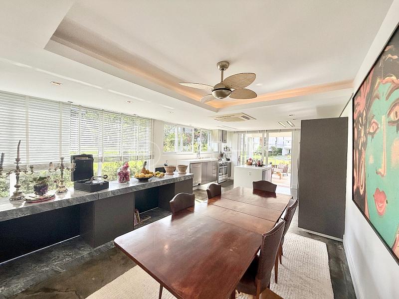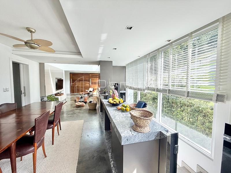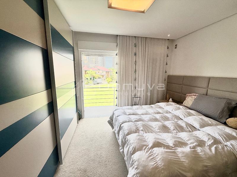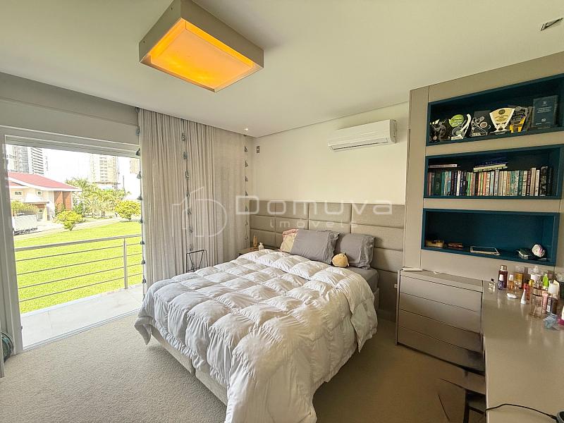 • O imóvel conta com 3 suítes, sendo uma suíte master com closet e duas com sacada, sala de estar com pé-direito duplo, sala de jantar, cozinha americana, lavabo e área gourmet com churrasqueira integrada à piscina.
