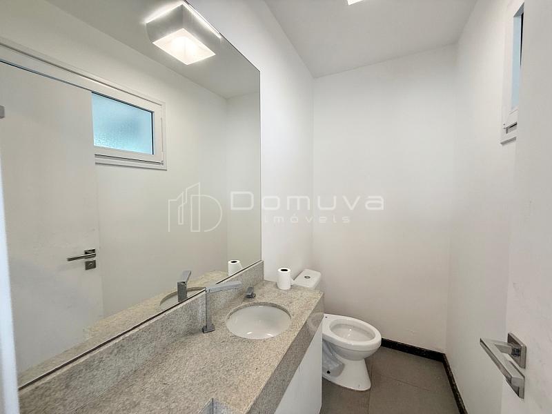 • No piso inferior, há ainda uma suíte adicional, lavanderia, biblioteca, depósito, sala de TV, lavabo e garagem coberta para dois carros.